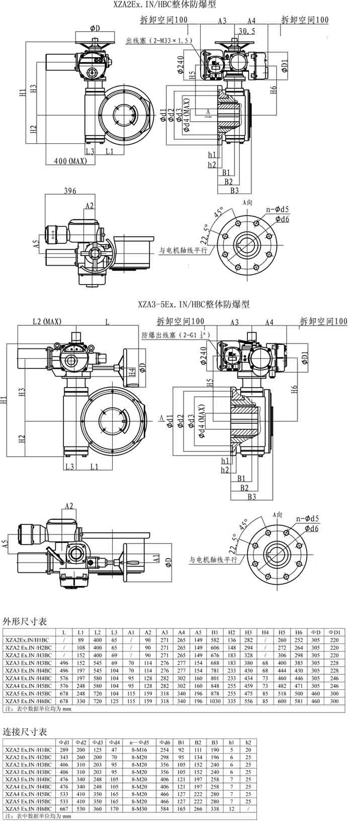 XZA-HBC整體防爆型產(chǎn)品外形及連接尺寸