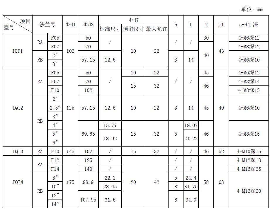 IQT1~I(xiàn)QT4/JS(220V單相電機)系列技術(shù)參數(shù)表