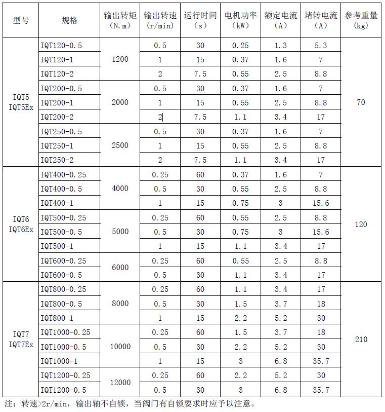 IQT5~IQT7系列技術(shù)參數(shù)表