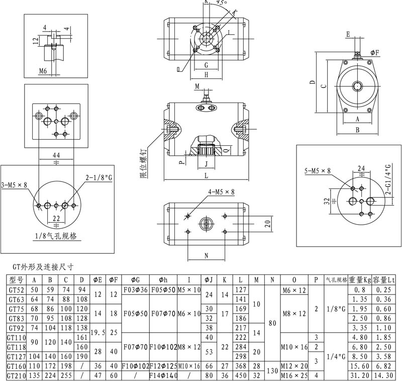 GT系列閥門氣動裝置是我公司新研制的輸出軸回轉(zhuǎn)角度為90°的部分回轉(zhuǎn)型氣動裝置。它可以與球閥、蝶閥等閥門組合成氣動閥門,也適用需90°回轉(zhuǎn)的其它機(jī)械裝置。該產(chǎn)品通過配用電磁閥等附件可以完成開、關(guān)兩位置的動作控制,以及連續(xù)動作控制的不同要求。用戶可根據(jù)實際需要進(jìn)行選擇。